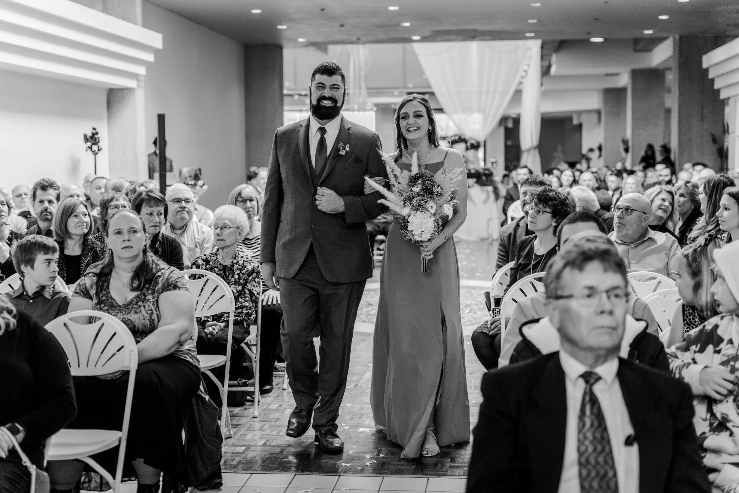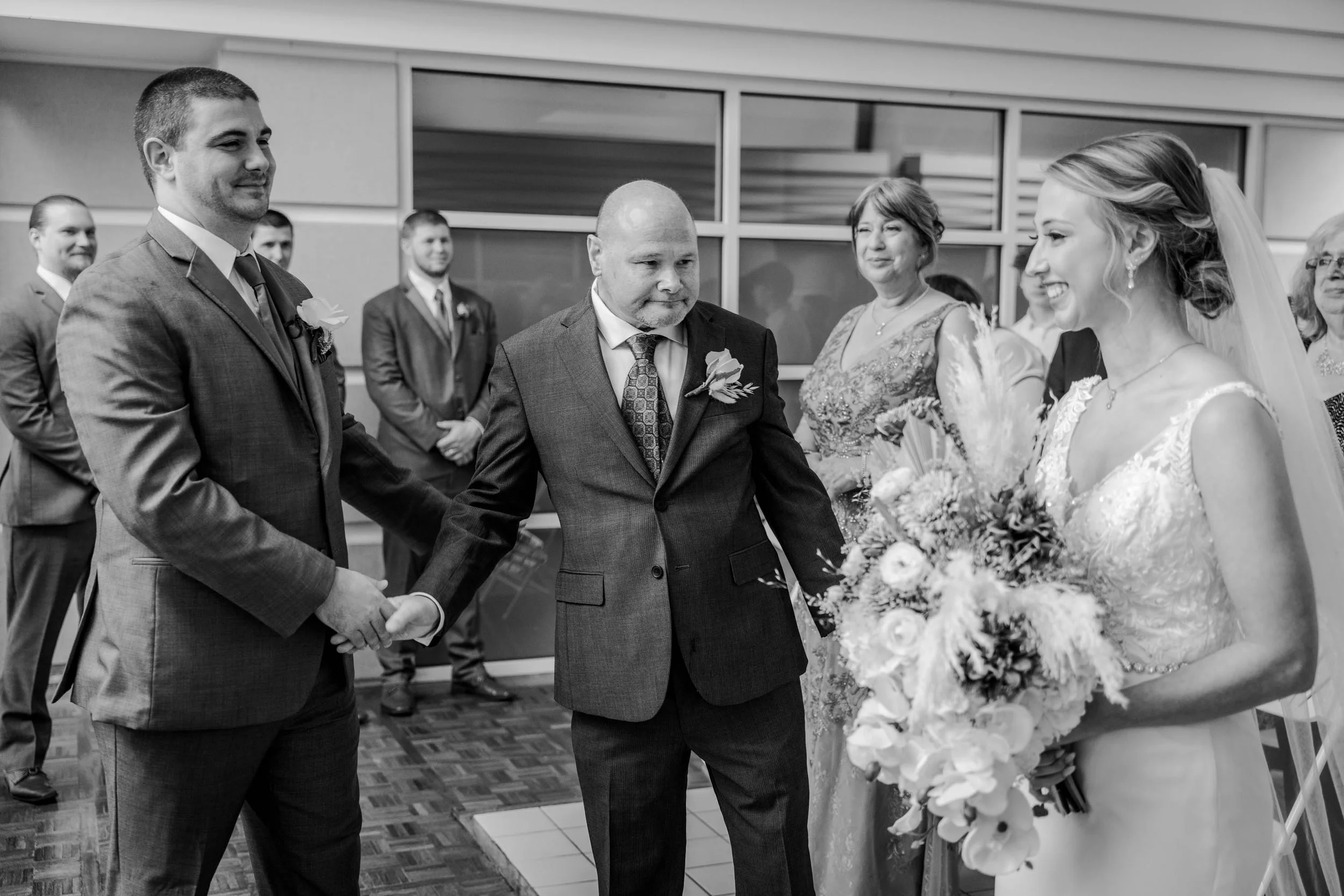 This wedding was photographed in partnership with Simply Love Wedding Videography. There was so many things I loved about this wedding - the fake first look with the best man in a wedding dress, the bridal party having matching fake tattoos of the groom, the gorgeous venue, and the beautiful details! Such a fun day with an amazing bridal party!